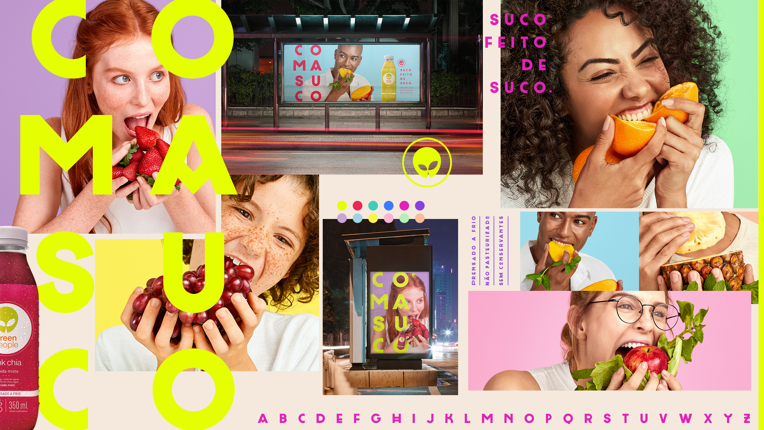 To launch Greenpeople, a cold-pressed juice that is unpasteurized and doesn't have any preservatives, we created the campaign "Coma suco", which means "Eat juice" and put people literally eating our products.